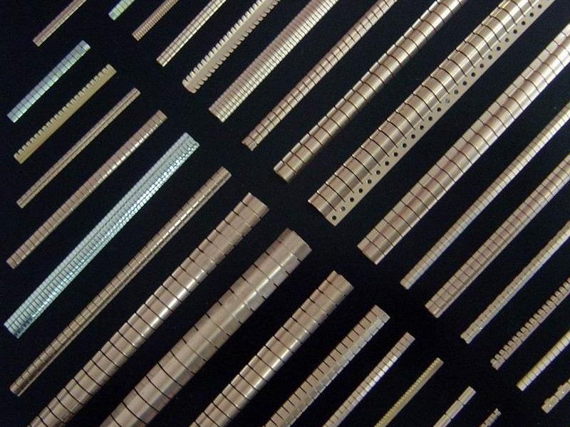 鈹銅成型后進(jìn)行硬化處理,不僅可以獲得其他銅合金沒有的強(qiáng)度、硬度和良好的電導(dǎo)率,而且抗疲勞性、耐磨性、耐腐蝕性也很出色,因此被作為普通彈簧材料得到廣泛利用。此外,即使在升高溫度的狀態(tài)下,斷裂應(yīng)力也遠(yuǎn)高于其他材料,耐腐蝕性、抗疲勞性也非常出色。雖然在潮濕、硫黃的氣體介質(zhì)中變得相當(dāng)臟污、嚴(yán)重變色,但對(duì)機(jī)械性質(zhì)并無不良影響。